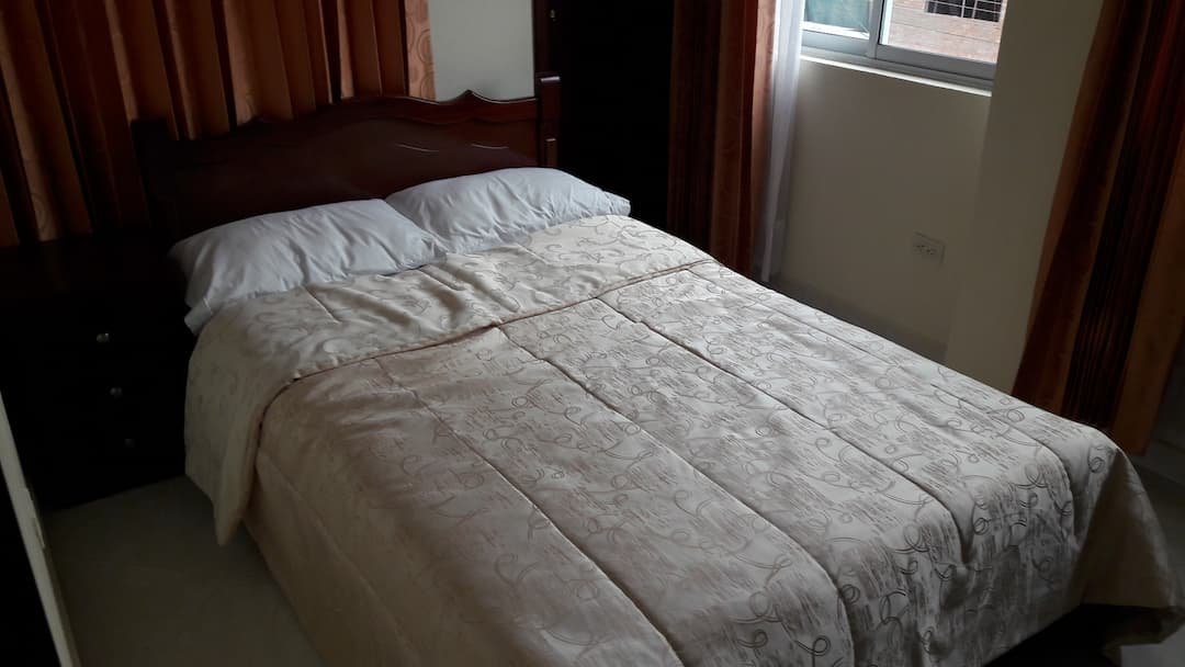 El hospedaje incluye habitación con cama, mesita de noche, baño privado con agua caliente, Smart Tv, closet, Wi Fi. Adicional: máquina lavadora, patio de secado de ropas.